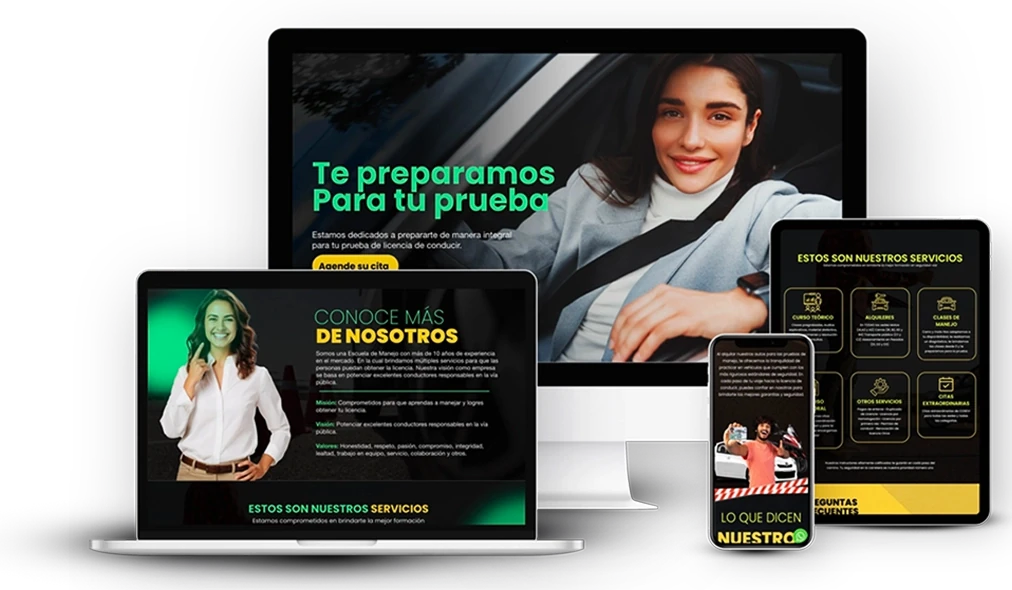 Tu página se ajusta automáticamente a móviles, tabletas y computadoras, ofreciendo una experiencia fluida en todas las pantallas.